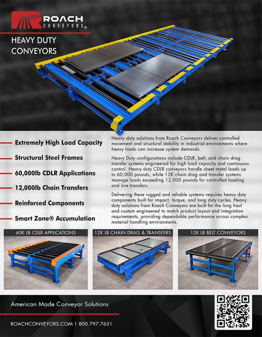 Roach Conveyors are engineered to order based on customer-defined specifications, ensuring the right fit for performance, layout, and throughput needs. Our vertically integrated manufacturing process reduces reliance on purchased components, resulting in optimized lead times and consistent quality.