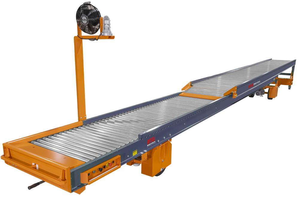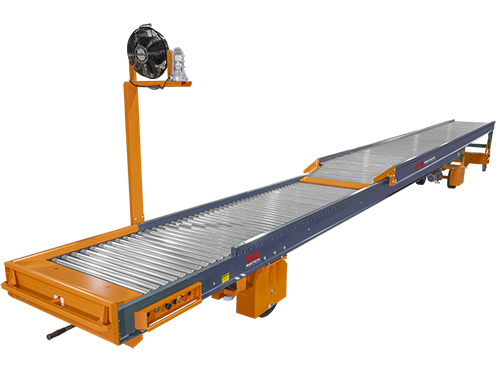 Truckloader conveyors are designed to move cartons, parcels, bags, and similar unit loads directly from a facility conveyor line into a truck, trailer, or container. Installed at shipping docks or integrated with warehouse conveyor systems, these units extend into the trailer to reduce the distance operators must carry product. The conveyor transports product from the infeed point to the loading area, where workers place items for stacking or palletization inside the vehicle. Many systems retract when not in use, allowing dock space to remain open for forklifts and other traffic.