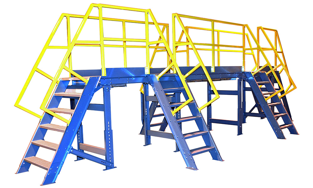 Walkovers and crossovers provide elevated access across conveyors, allowing operators and maintenance personnel to move safely between work areas. Tubelock systems use laser cut tubing that assembles into elbow, tee, and cross joints without welding, supporting modular installation and layout changes. Reinforced construction with stiffener brackets provides structural stability for use in demanding industrial environments.