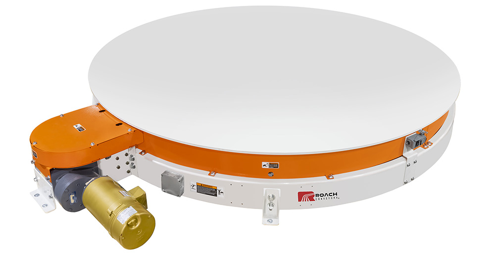 Two primary configurations are used in industrial applications: continuous rotation turntables and indexing turntables. Continuous rotation turntables rotate while the load remains in motion, making them suitable for applications requiring uninterrupted product movement. Indexing turntables rotate in defined increments and stop precisely at programmed positions, allowing accurate alignment with infeed and discharge conveyors. Heavy duty designs are capable of handling pallet loads up to 5,000 pounds and can be configured with powered roller, chain drag, belt, or modular conveyor surfaces depending on load type and system demands.