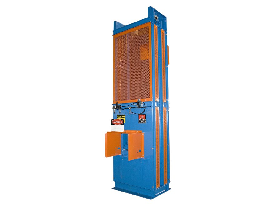 The pneumatic vertical lift uses air-powered actuation to raise and lower loads between levels. Pneumatic systems offer a straightforward mechanical approach using compressed air to power the lift mechanism.