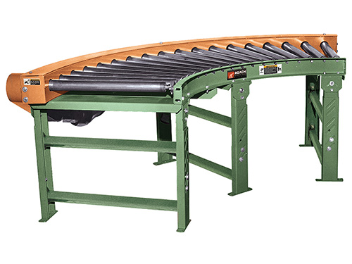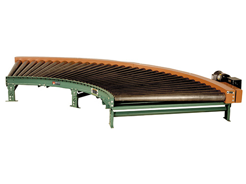 The 254TCDLRC is a medium duty curved CDLR conveyor designed with tapered rollers to maintain product orientation through the curve while conveying medium sized loads, including castings, drums, or palletized items. Tapered rollers accommodate directional change without unintended rotation of the conveyed unit.