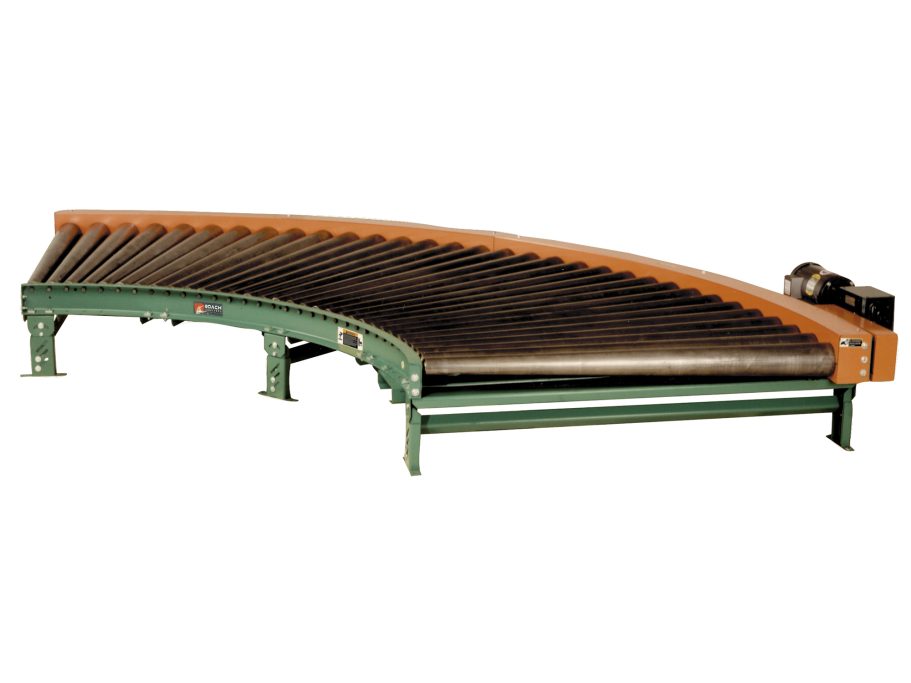 Chain drive engagement and rugged construction provide reliable motion around the curve, and reversible drive placement supports flexible integration with adjacent conveyors.