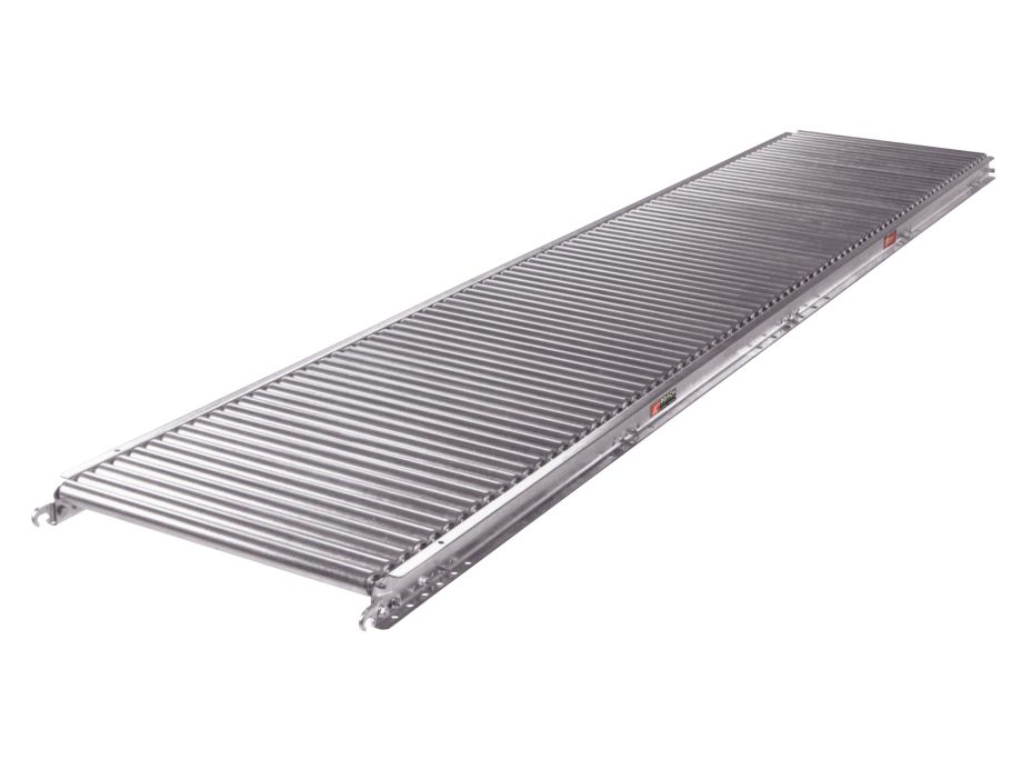 These conveyors use 1-3/8-inch diameter rollers in galvanized steel construction for corrosion resistance and durability in standard gravity applications. Available in straight and curved configurations, they support movement of cartons and tote loads by gravity and are well suited to general warehousing and distribution environments. Galvanized frames and rollers reduce surface wear and support smooth load travel over extended conveyor lengths.