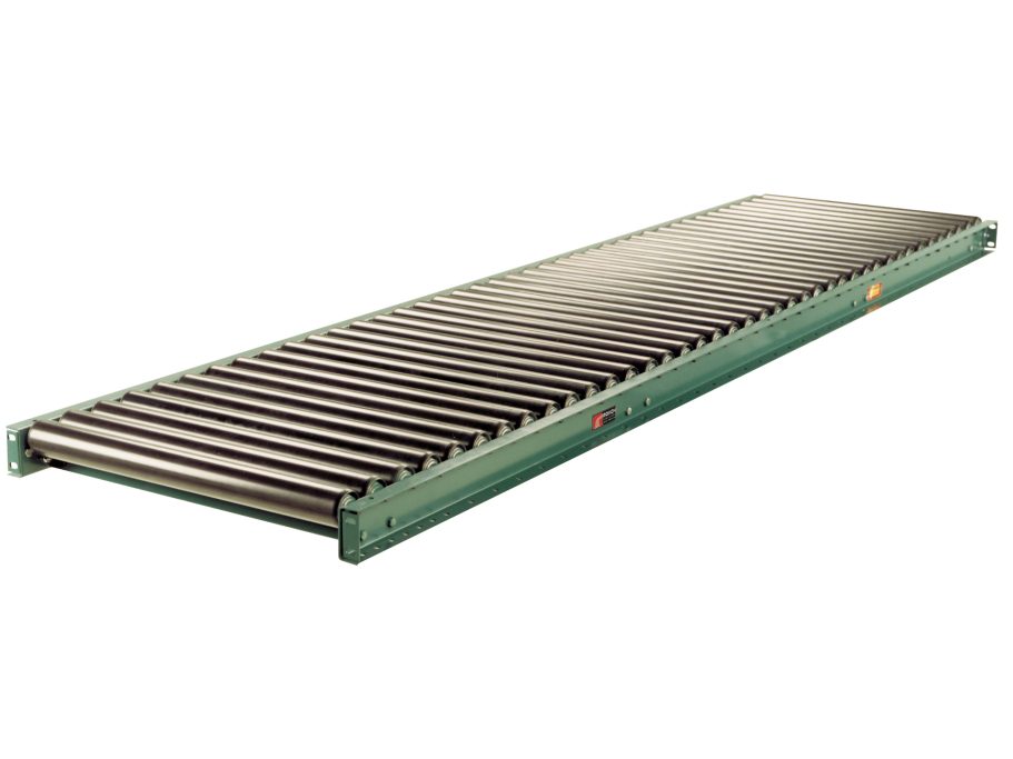 This gravity conveyor features 2-1/2-inch diameter rollers with 14 gauge structural tubing and heavier formed channel frames. Designed for higher structural integrity than lighter gauge lines, it supports gravity movement of larger and heavier items over extended lengths. The structural frame provides increased stiffness and resistance to deflection under load.