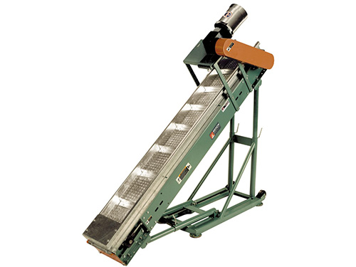 These conveyors are commonly used in machining, fabrication, and assembly environments where small components or scrap must be removed continuously. Belt options such as nitrile, wire mesh, or plastic flat top provide flexibility based on part size, temperature, and debris type. Cleated and flighted configurations support inclined conveying and prevent rollback of parts during elevation.