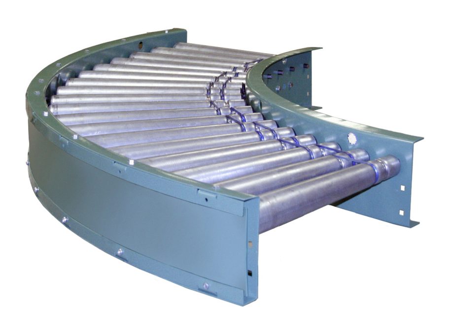 Rollers are set low in the 7-inch frame, providing stable conveying surfaces in curved paths. This model is appropriate where facility layouts require directional changes while sustaining zero pressure accumulation performance.