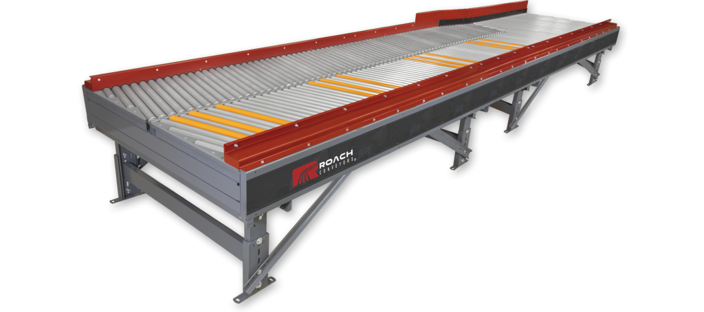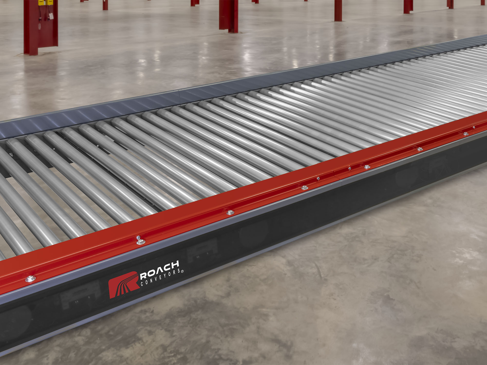 Dual center drives run 2 lanes of 1.9” dia. high-speed precision rollers. The rollers are skewed toward the center in a herringbone pattern driven by XLD drive bands, which allow for more rollers per motor at higher loads. The 48” conveying surface is band driven by a low-profile 24v brushless motor system for High-speed precision & near silent operation.
